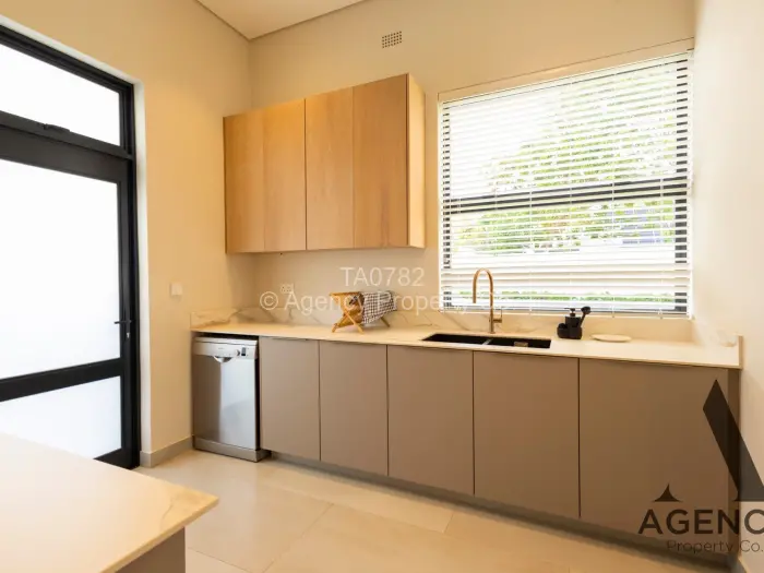 Four upmarket newly constructed townhouses available to rent. Exclusive, well managed and timeless designed. Each unit offers an open plan living and dining area coming off a landscaped front entrance and privately gated parking area. The living and dining rooms have concertina doors opening out to the generous covered verandah with access to your own private swimming pool and landscaped front garden. The kitchen offers a large central island for entertaining and informal dining, all major Bosch appliances installed. A separate scullery and laundry room for smooth running of the household. The master bedroom offers both his & hers walk in dresser, as well as a full en suite bathroom with modern finishings throughout. The second guest bedroom is set just down the passage, and utilises the family shared bathroom. The third and final bedroom is setup as a private guest wing with its own ensuite bathroom. Perfect for long or short term guest stays.