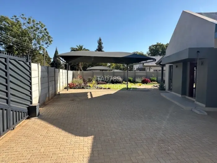 Set within a recently constructed cluster of four townhouses, designed and built by a renowned & experienced development firm, this executive complex offers: an entertainers' delight open plan living and dining area coming off a fully fitted decor kitchen with dedicated butler's pantry and ancillary room. The living areas open out through the concertina doors to the generous covered verandah and braai area and landscaped garden access. All bedrooms are located down one wing and peel off from the central passage with fitted linen storage section. The master offers both his and hers dressers, large floor area, private patio access as well as a full ensuite bathroom. Three guest bedrooms, each with built in cupboards. A large family shared bathroom caters for these rooms.