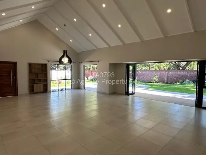Set within a recently constructed cluster of four townhouses, designed and built by a renowned & experienced development firm, this executive complex offers: an entertainers' delight open plan living and dining area coming off a fully fitted decor kitchen with dedicated butler's pantry and ancillary room. The living areas open out through the concertina doors to the generous covered verandah and braai area and landscaped garden access. All bedrooms are located down one wing and peel off from the central passage with fitted linen storage section. The master offers both his and hers dressers, large floor area, private patio access as well as a full ensuite bathroom. Three guest bedrooms, each with built in cupboards. A large family shared bathroom caters for these rooms.