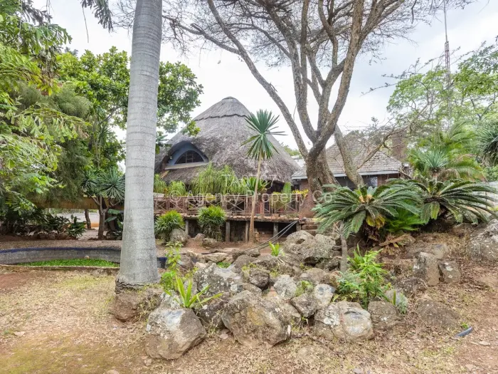 A unique, lodge-style property on 4 680 square metres. Offering both thatch and slate roofing set on a natural rocky garden. This home needs renovations but offers a great opportunity for someone to modernise. There is also potential to build a statement double storey family home with elevated views. South after up-market location.