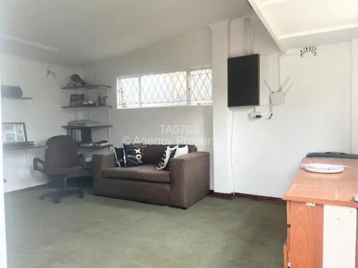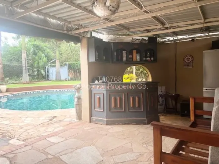 Off the kitchen is a very practical enclosed back veranda with a built in braai area. Neat office is off this veranda as is a tandem lock up carport, workshop and staff quarters.